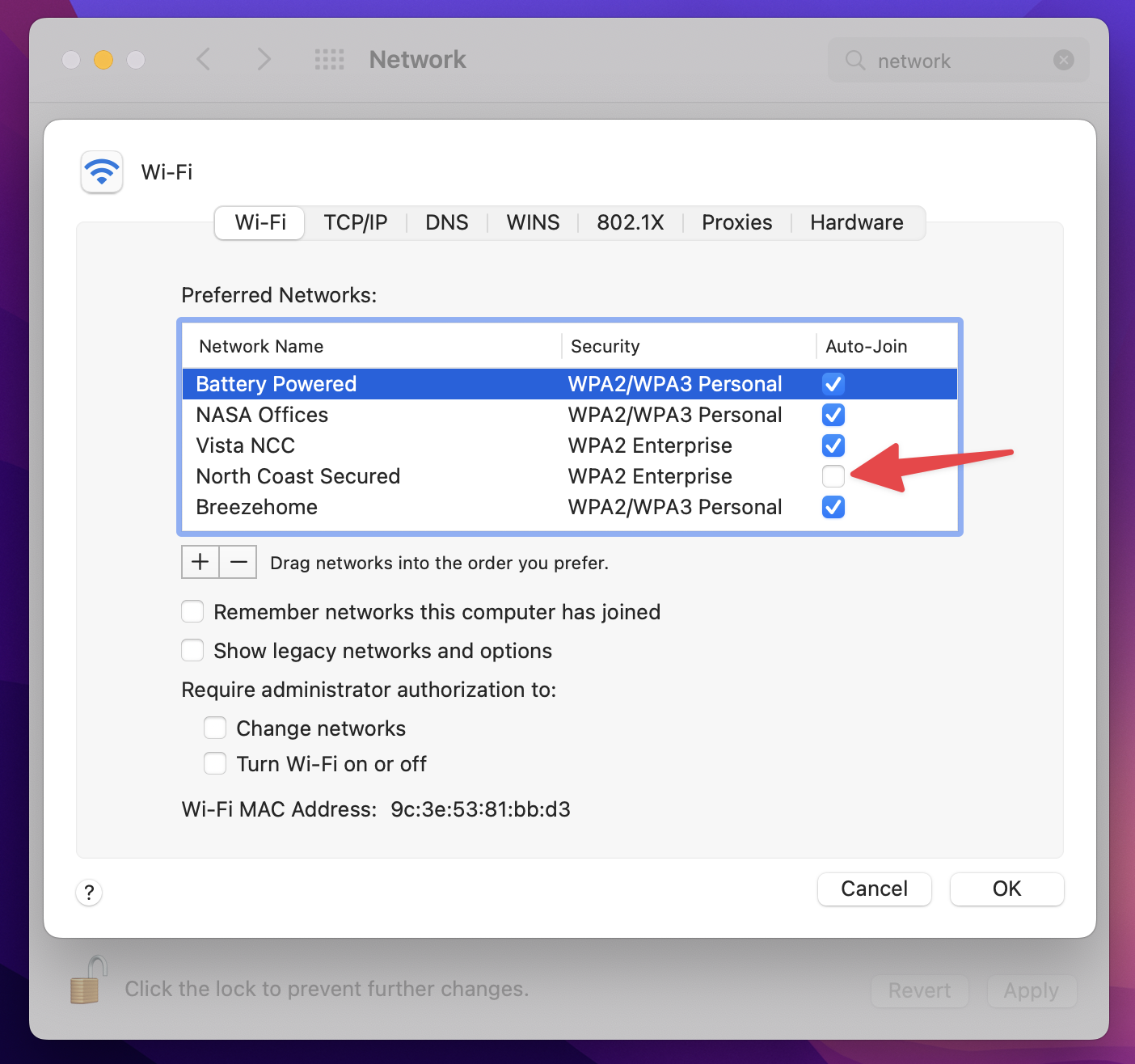 3. Make sure that "Auto-Join" is unselected for our Guest network.