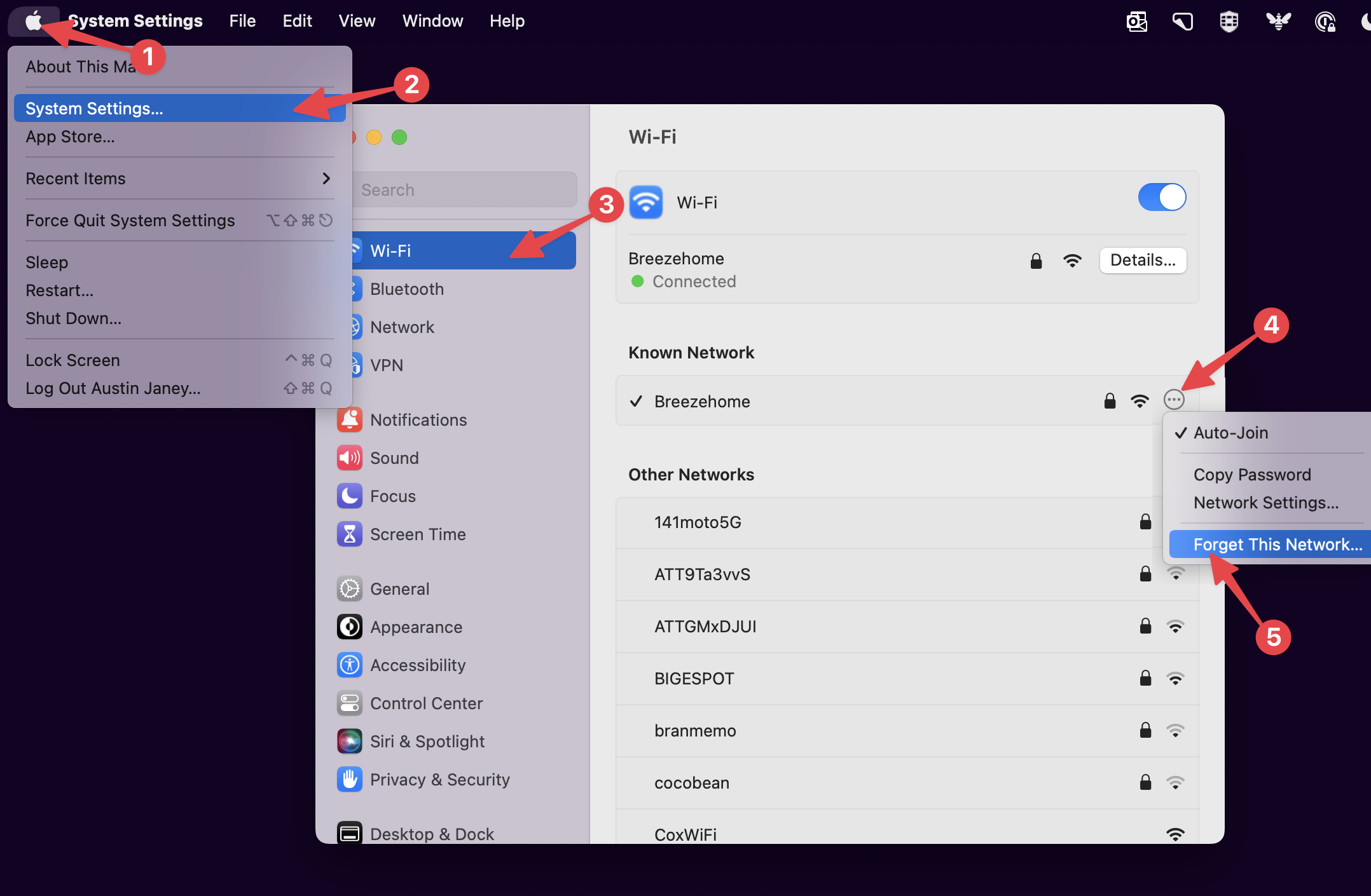 If your Mac is having trouble connecting to Wi-Fi, you may need to forget the wireless network and then re-add it. Here's a quick guide on how to do that: