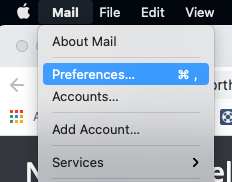 2. Select Preferences for mail in the menu bar