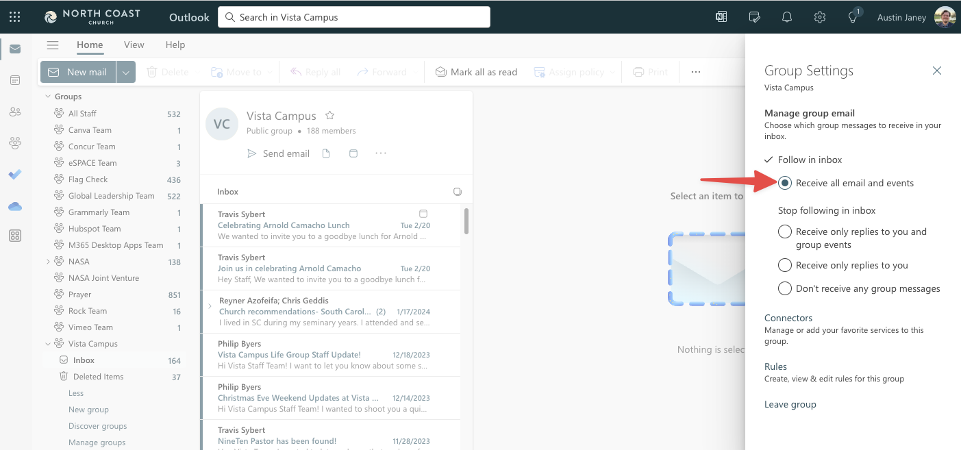 2. Adjust the "Follow in inbox" to receive all messages sent to this group in your inbox.