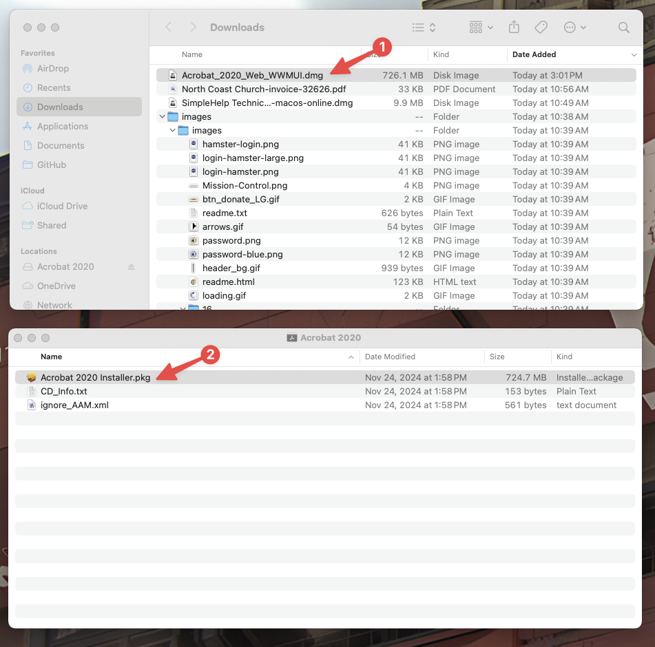 2. Double click the .dmg file in your downloads folder on your mac, doing so will open a new window where you can double click the Acrobat 2020 Installer.pkg to install Acrobat Pro 2020.