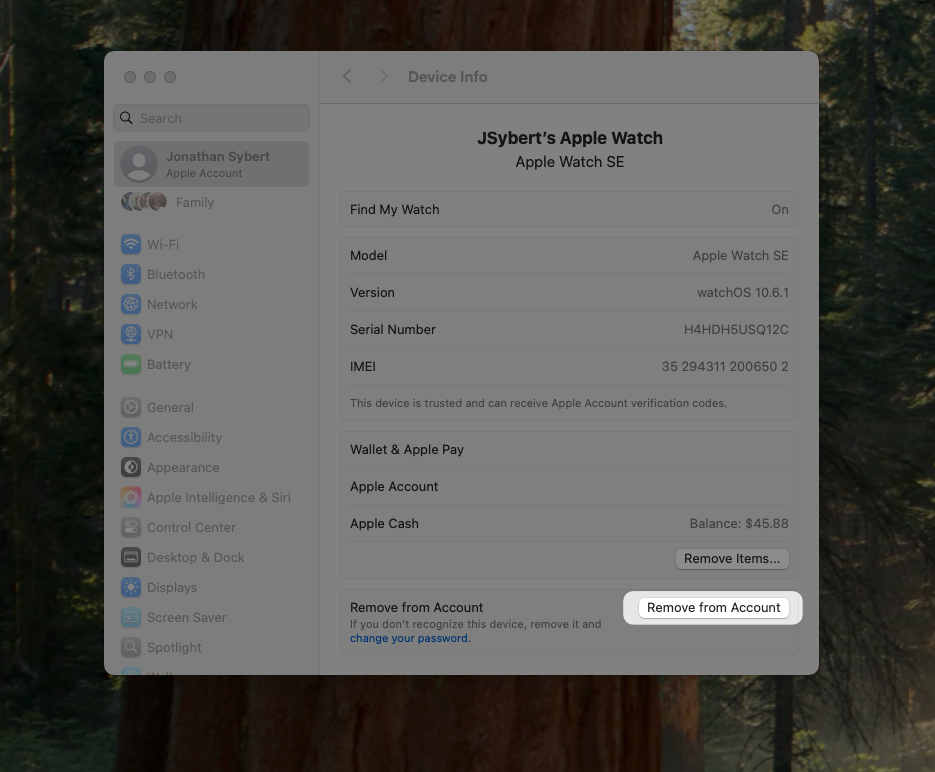 When in the Device Info window, Click on the Remove from Account button, and follow any prompts.