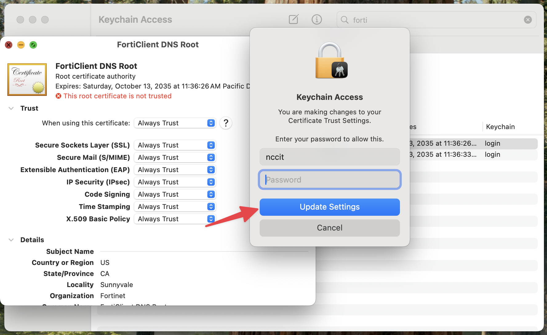 8. You will then be prompted to put your password in to authorize the change, enter your password and select