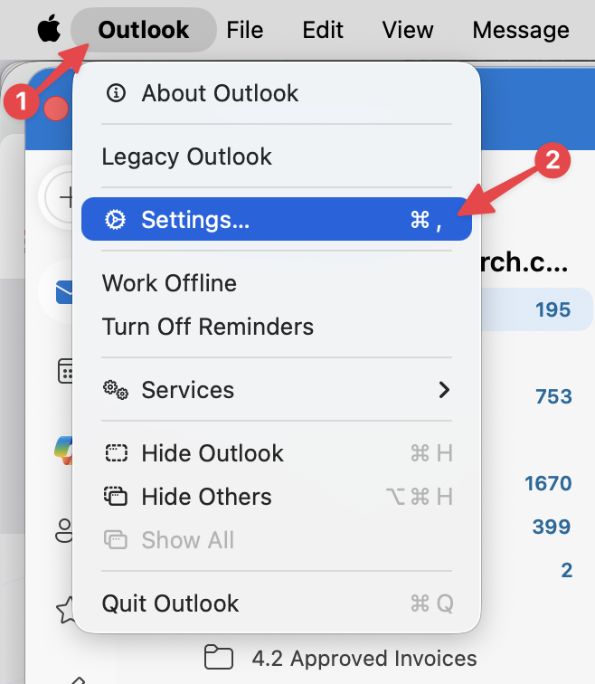 Open Outlook, then open preferences (now called settings in macOS Tahoe if you haven't yet updated! The water is great!)